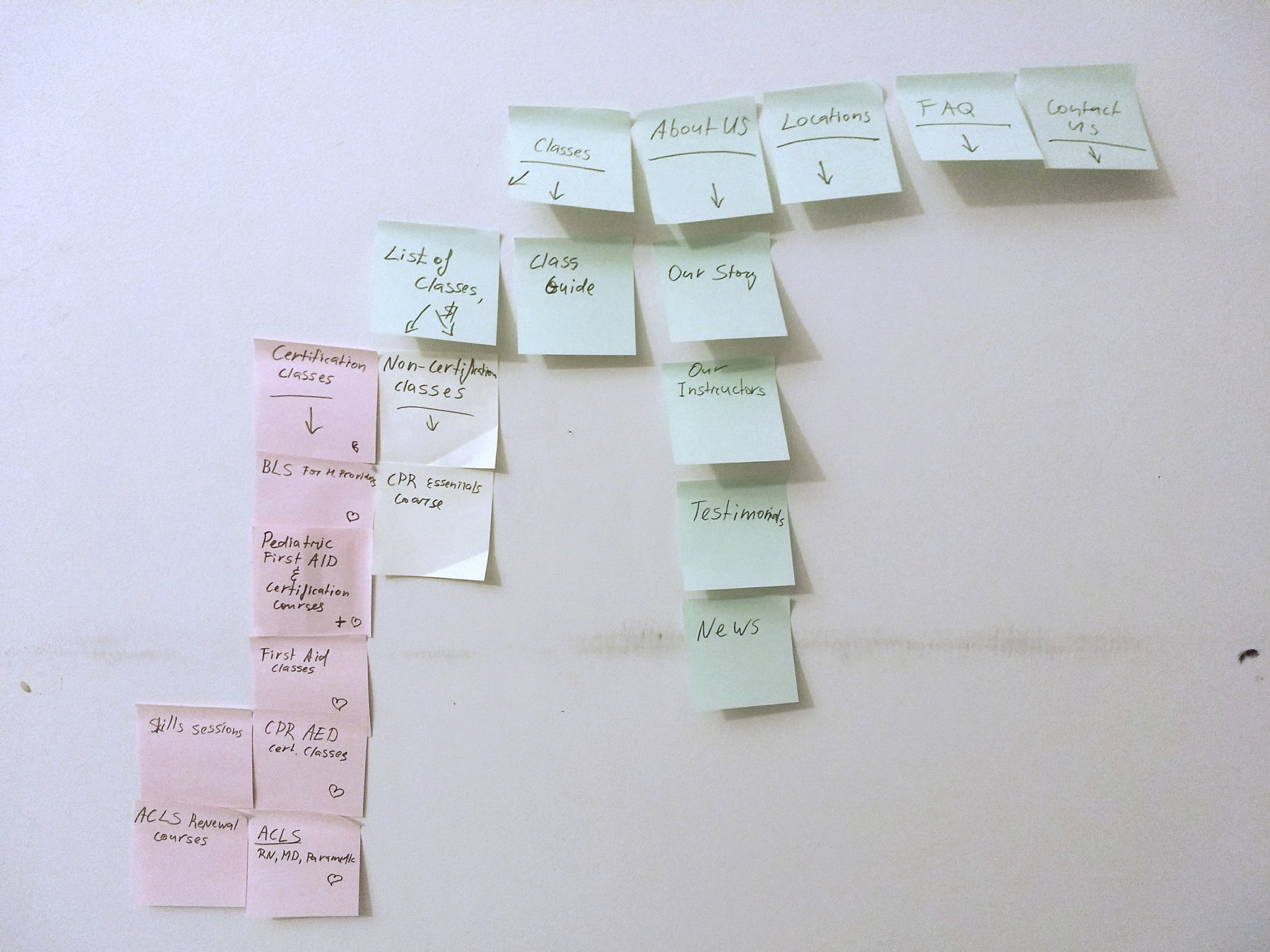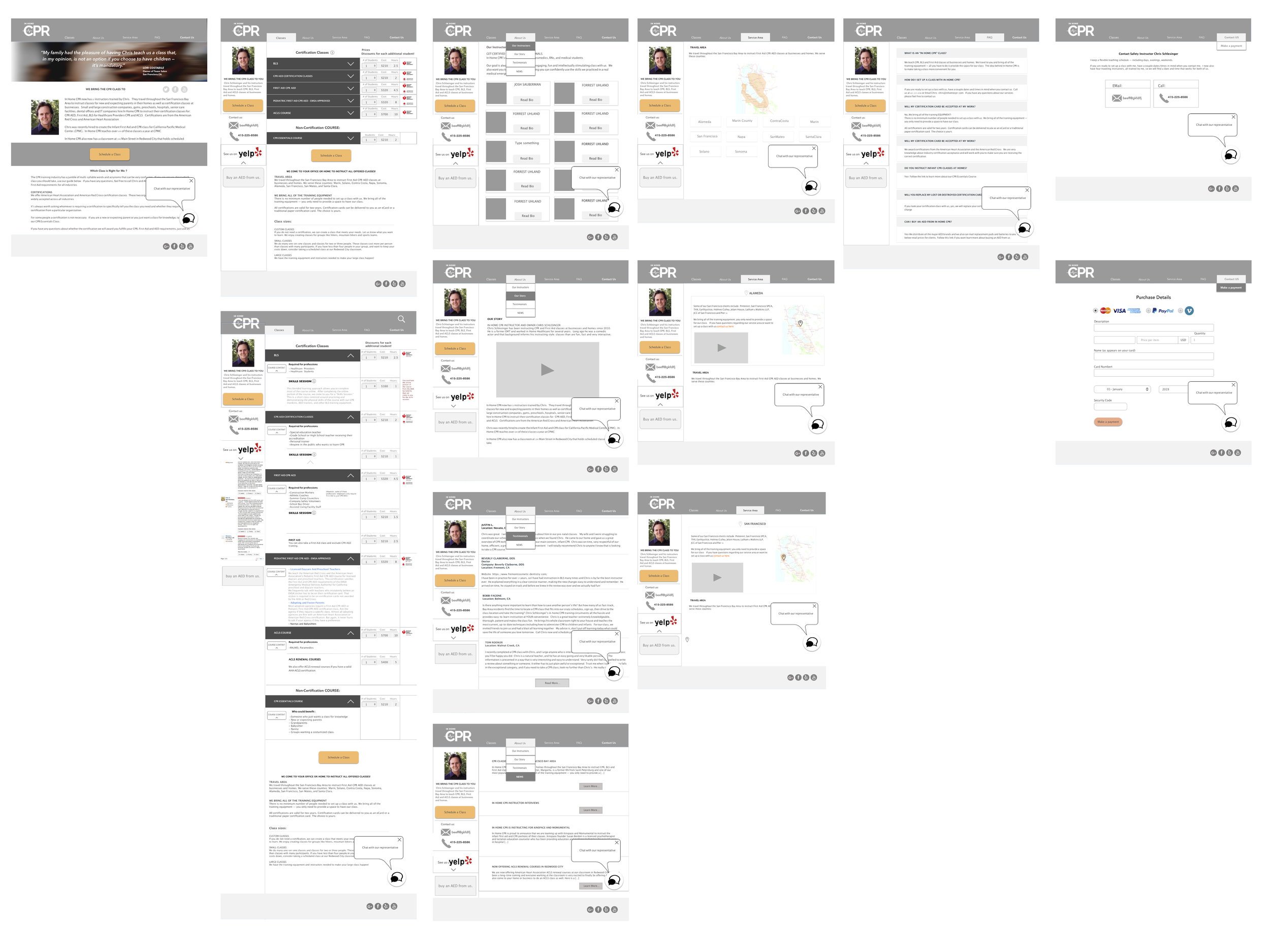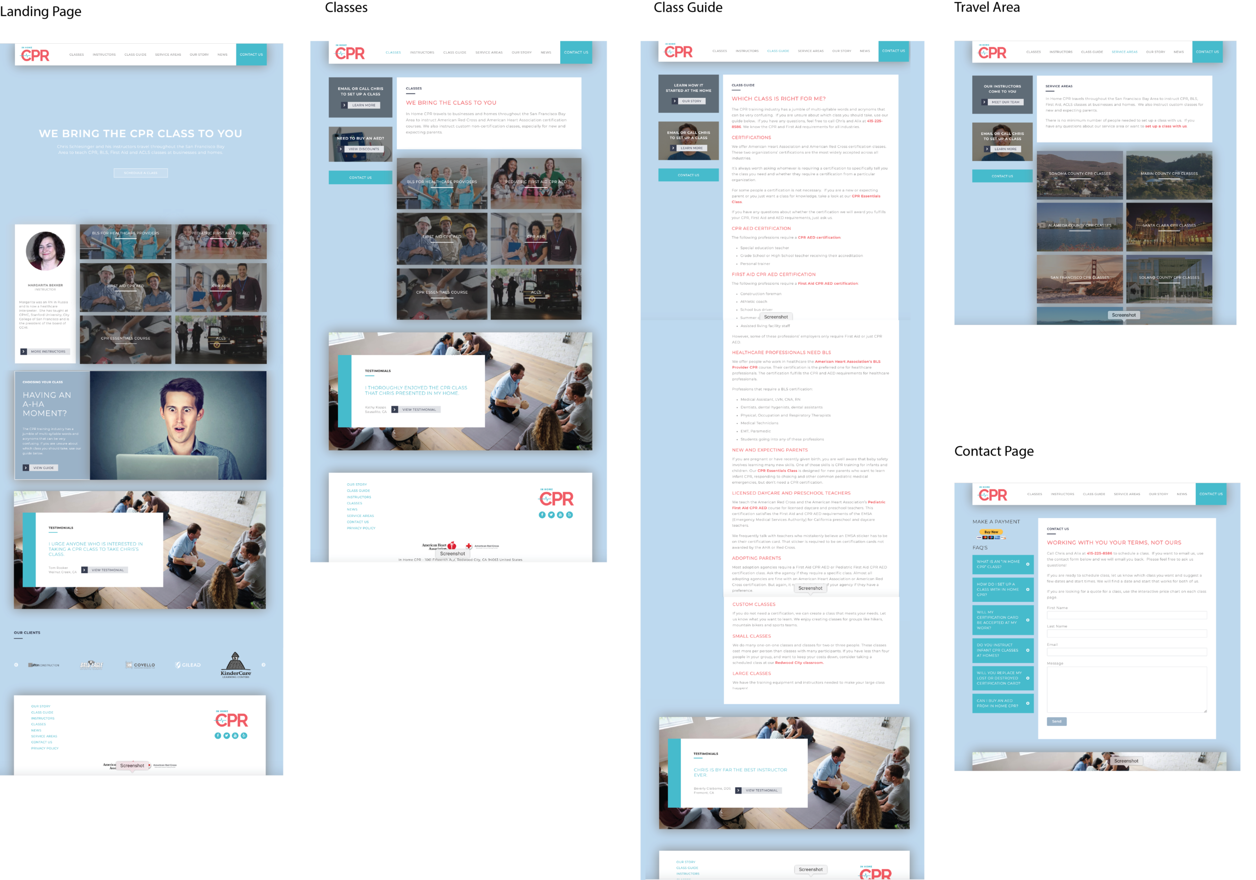 The InHomeCPR website is the major channel for users to gain information about the different types of first aid certificate and non-certificate programs, see the area of service, register for class by contacting company’s representative, and pay for class.. However, the current website has severe usability problems that makes it challenging for visitors to achieve their tasks quickly and accurately. As a result, the conversion rate has dropped drastically since the new (prior to my involvement) redesigned website was launched.