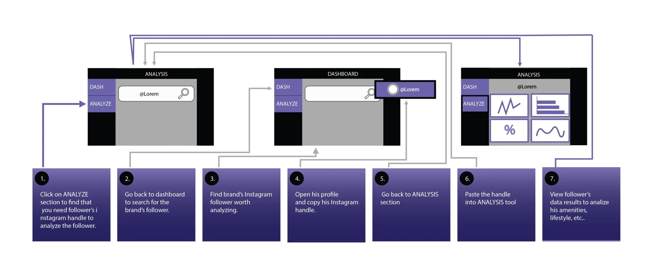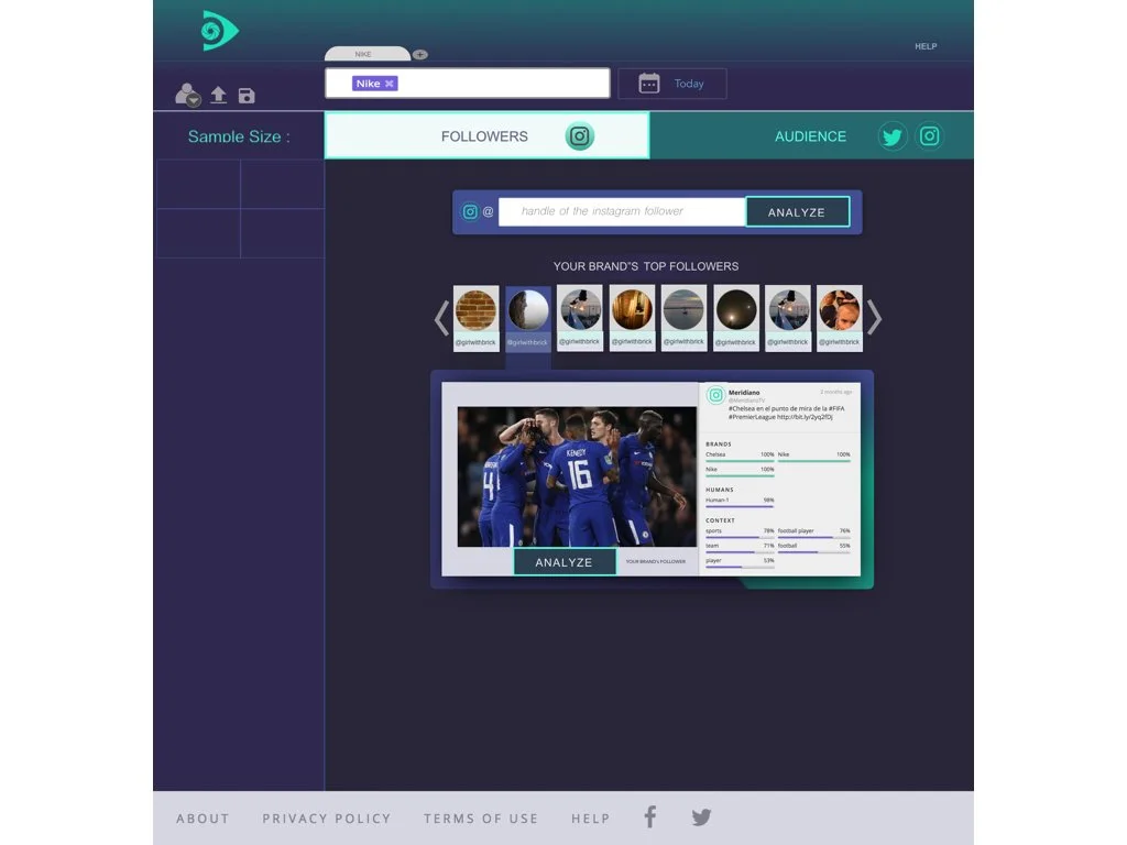Here, you can either browse from the selection and choose one of the suggested top brand’s followers, or go the old way: paste follower’s instagram handle. This way, if the user doesn’t have anyone specific in mind, he can see the top influential followers and analyze them without all of the unnecessary steps.