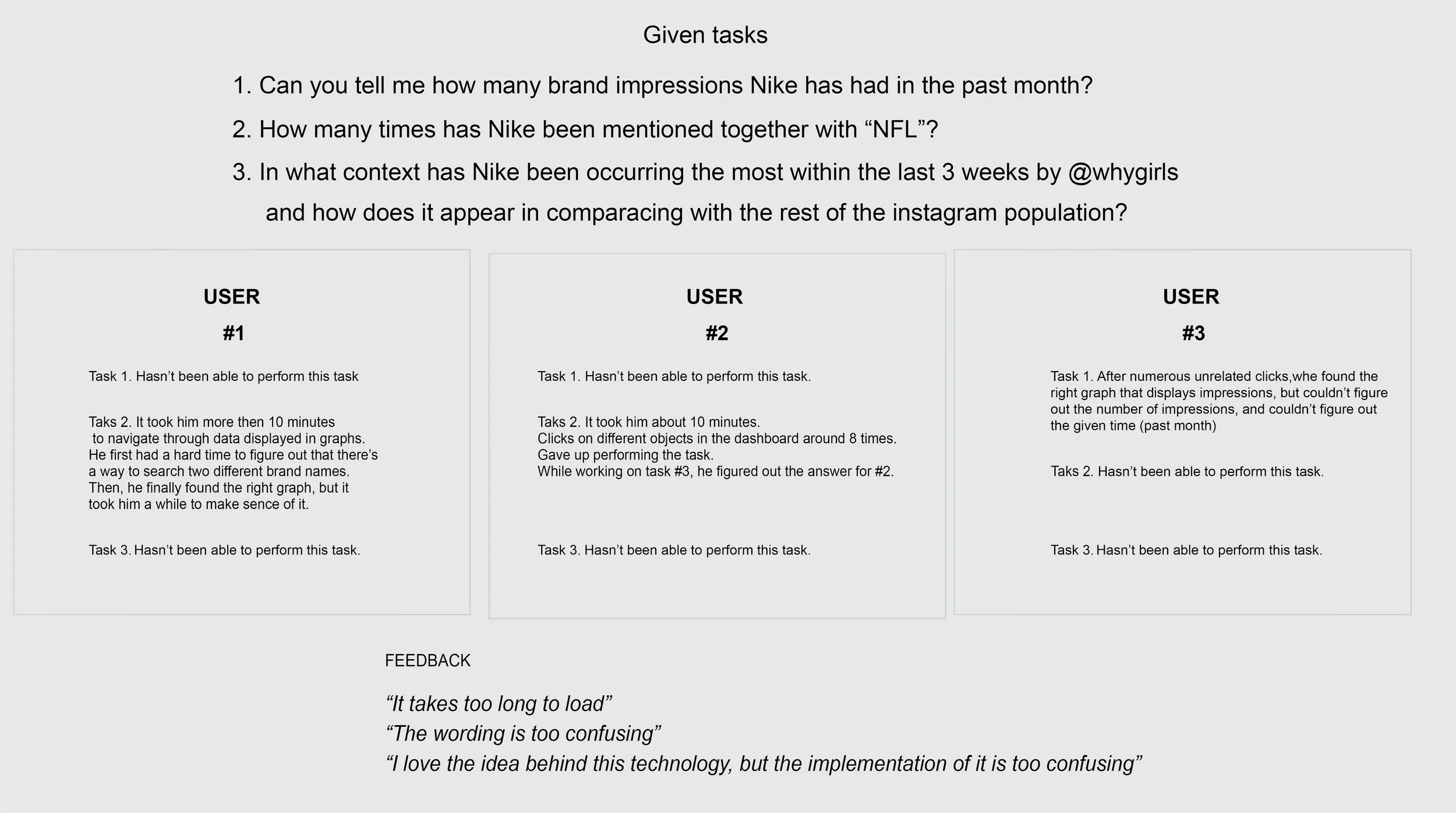 Overall, the feedback we received was surprisingly positive all around. Participants had a clear understanding of the design functions, presented data, placement of elements, etc..