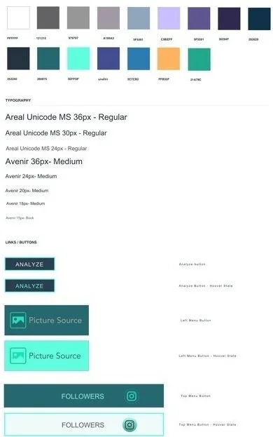 After determining major screens, I designed high fidelity prototypes starting with creating a style guide for the user interface.